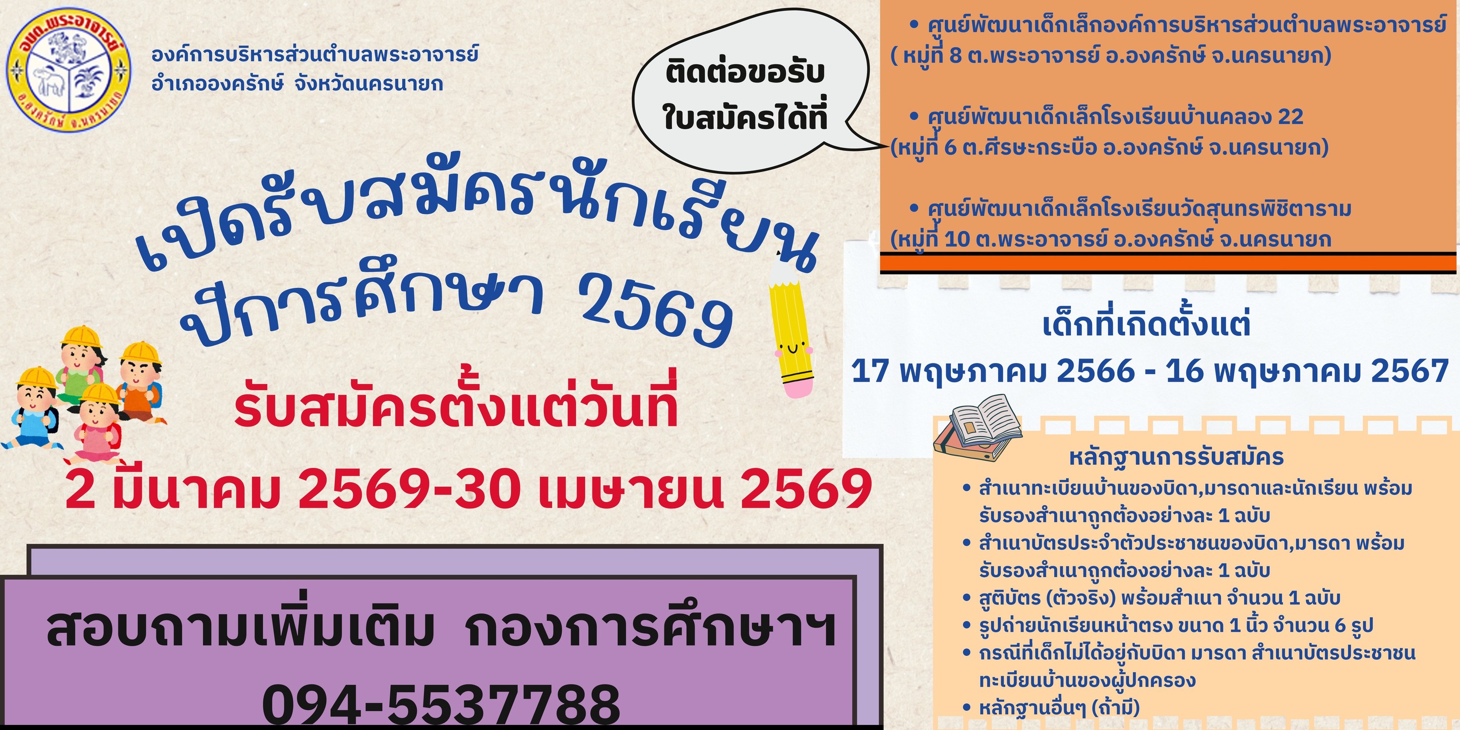 *****สอบถามเพิ่มเติม กองการศึกษาฯ 094-553-7788****