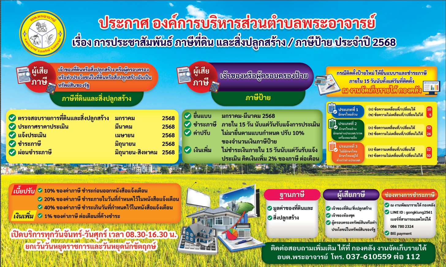 กำหนดการชำระภาษีที่ดินและสิ่งปลูกสร้าง ภาษีป้าย ประจำปี 2568