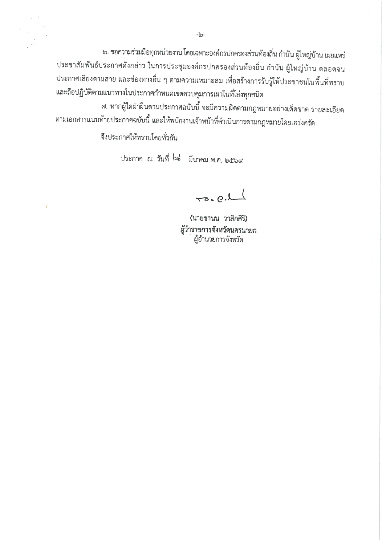 ประกาศกองอำนวยการป้องกันและบรรเทาสาธารณภัยจังหวัดนครนายก เรื่อง กำหนดเขตควบคุมการเผาในที่โล่งทุกชนิดในพื้นที่จังหวัดนครนายก (ฉบับที่ 2 )